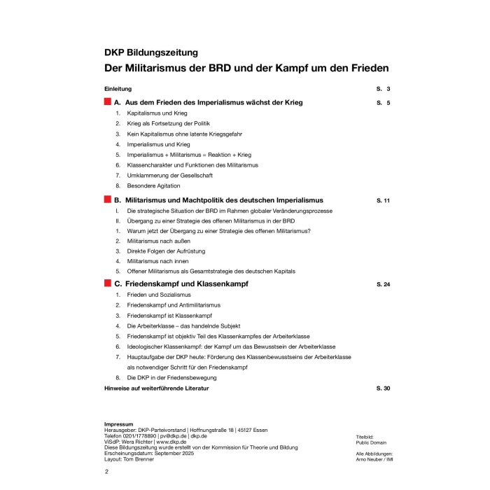 Bildungs-Zeitung „Kommunisten und der Kampf um Frieden“