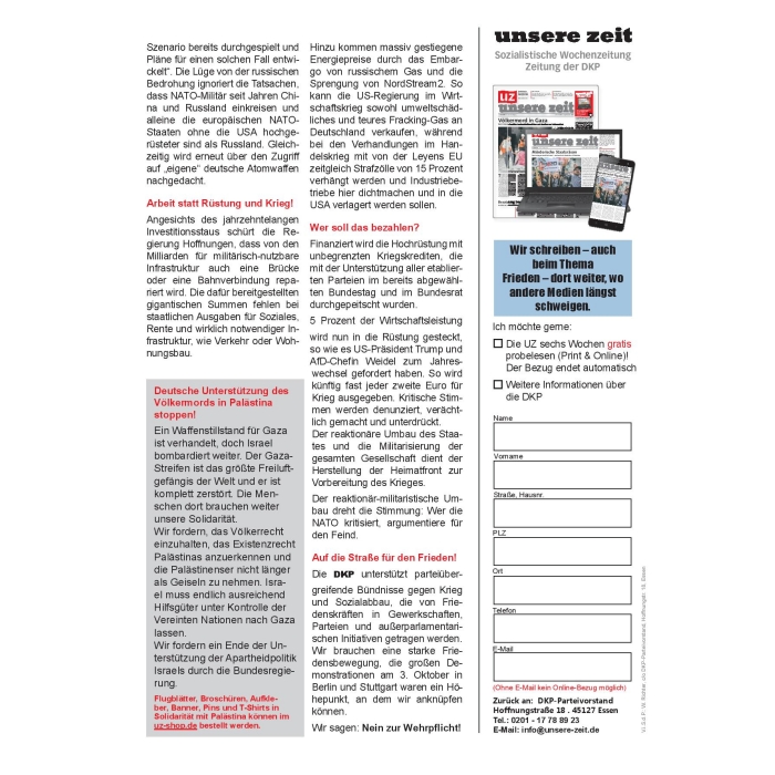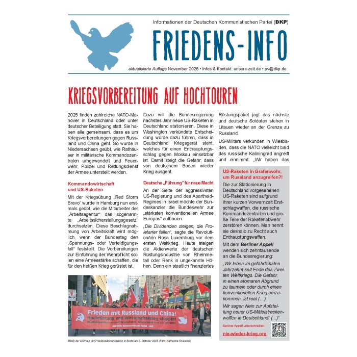 DKP Friedens-Info „Kriegsvorbereitung auf Hochtouren“